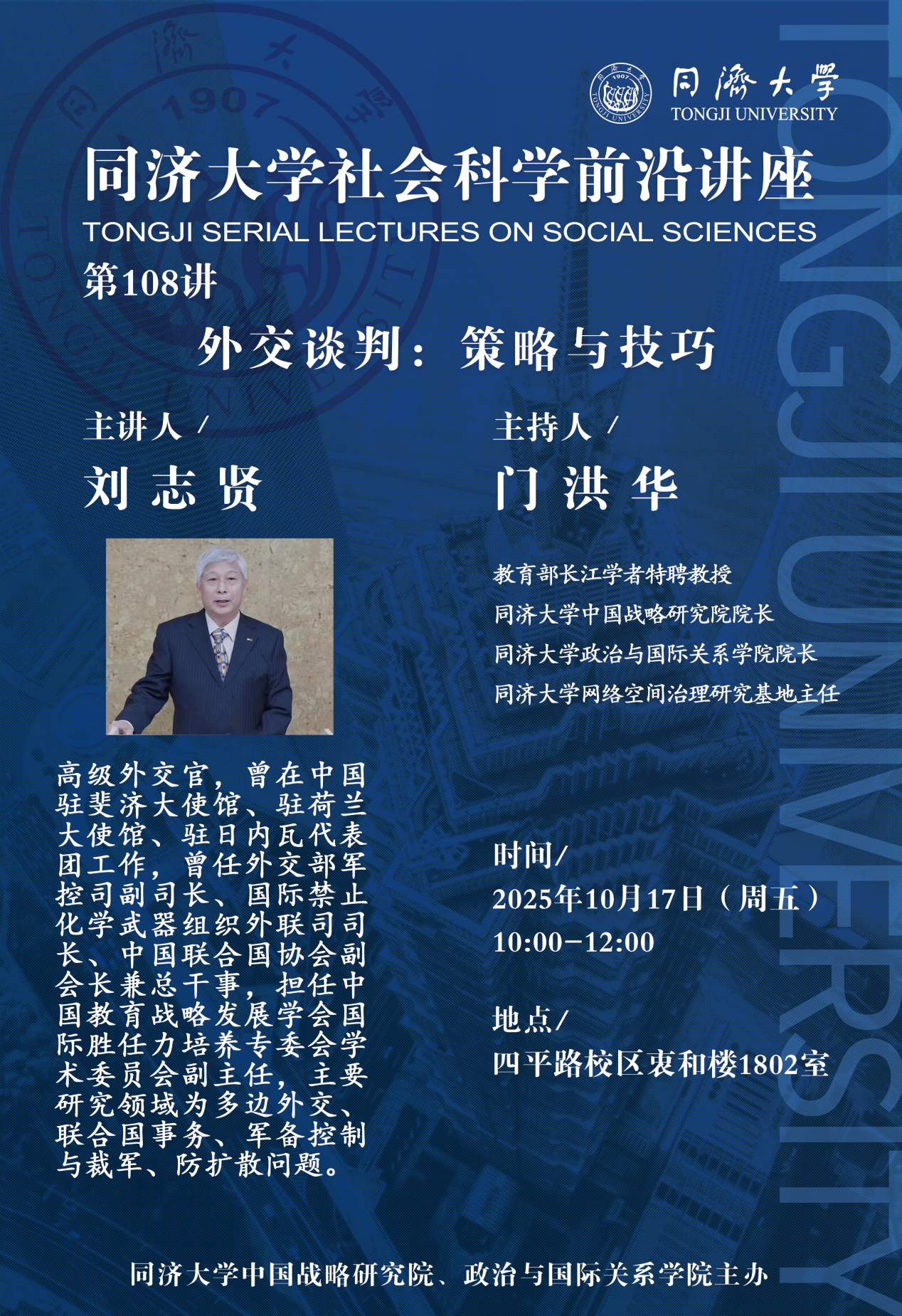2025年10月17日上午,由williamhill官网中国战略研究院/威廉希尔足球网主办的williamhill官网社会科学前沿讲座第108讲在williamhill官网衷和楼1802会议室成功举办。中国联合国协会原副会长兼总干事刘志贤同志应邀莅临威廉希尔足球网,为师生作题为“外交谈判:策略与技巧”专题讲座。本次讲座由教育部长江学者特聘教授门洪华院长主持,威廉希尔足球网教师、博士生、硕士生、本科生共60余人参加此次讲座。